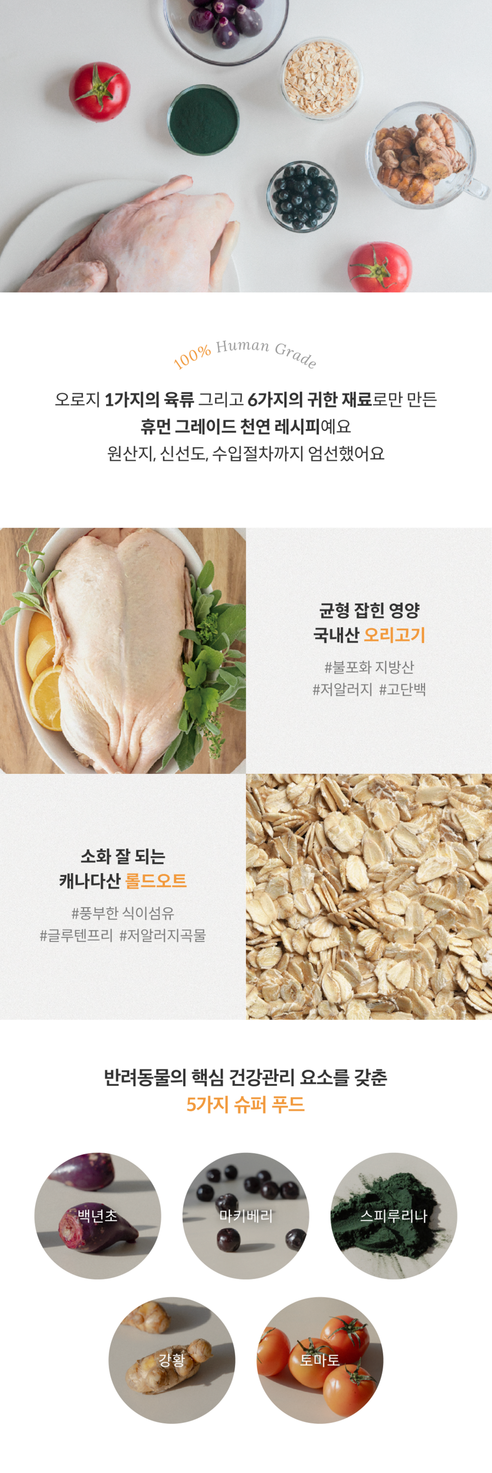 자연 속 레시피: 국내산 오리, 캐나다산 롤드오트, 미국산 스피루리나
